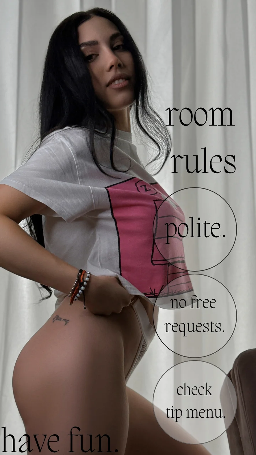 Posición 69, Upskirt, Twerking, Toples, Flashing, Baile Erótico, Masturbación con los Pechos, Estriptis, Fumar, Azotes, Juego de Roles, Masturbación, Humillación, Dirty Talk, Ahegao, Squirting, Juguetes Sexuales, Orgasmo, Show con Aceite, Juguetes para Pezones, Amas, Fetichismo de Pies, Dildo o Vibrador, Creampie, Mamada